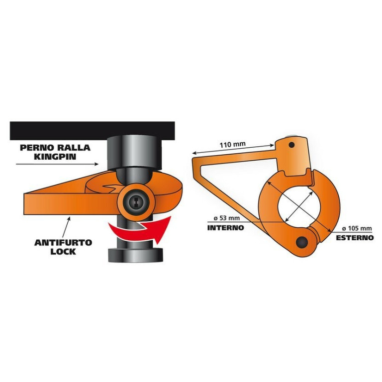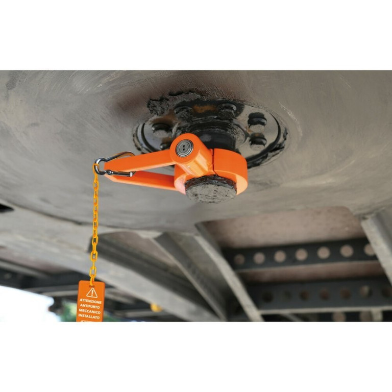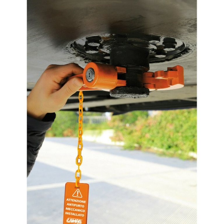 Zámek královského čepu návěsu kamionu SECURE TRAILER od italské společnosti LAMPA. Se speciálním systémem zamykání na zatlačení zámku "push-to-lock".Více informací