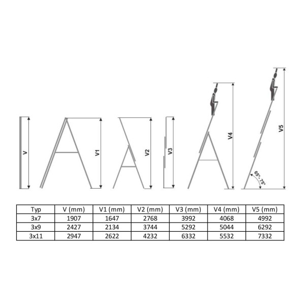 Trojdílný žebřík vyniká svou univerzálností a rychlou a snadnou manipulací. Lze použít jako jednoduchý, dvojitý nebo trojitý výsuvný a samostatně stojící žebřík.Více informací